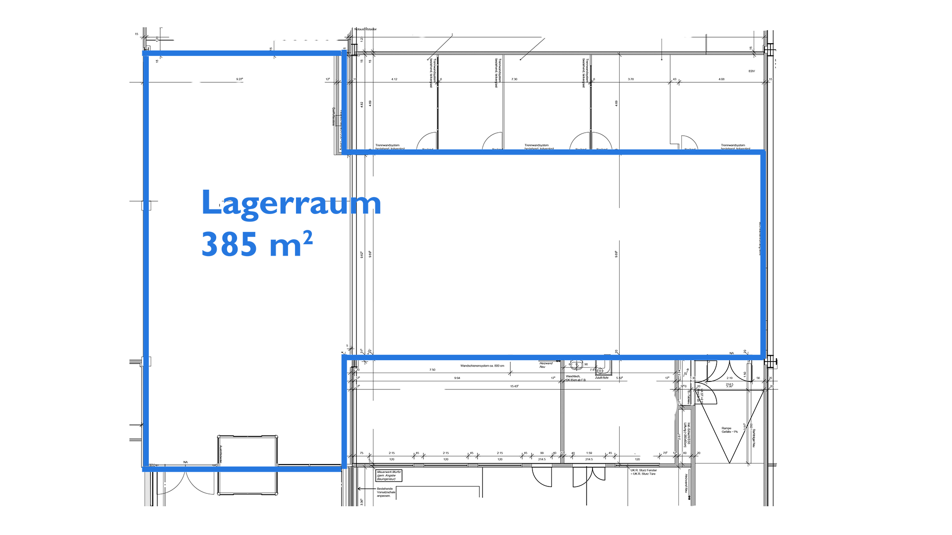 Ab sofort stehen in einem gepflegten Gewerbegebäude grosszügige und vielseitig nutzbare Lagerflächen zur Verfügung. Die Flächen befinden sich im Erdgeschoss.